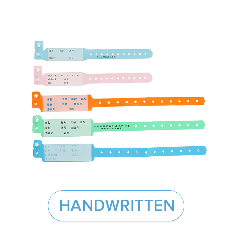 Professional manufacturers produce handwriting wristbands by using medical and environmental PVC which is soft and comfortable, there will be nothing irritation to the skin. The size of Handwriting Wristband is suitable for adult and children and buckling with snap fastener. You can cut it off or tear it up after usage as disposable wristband is not easy to be released.